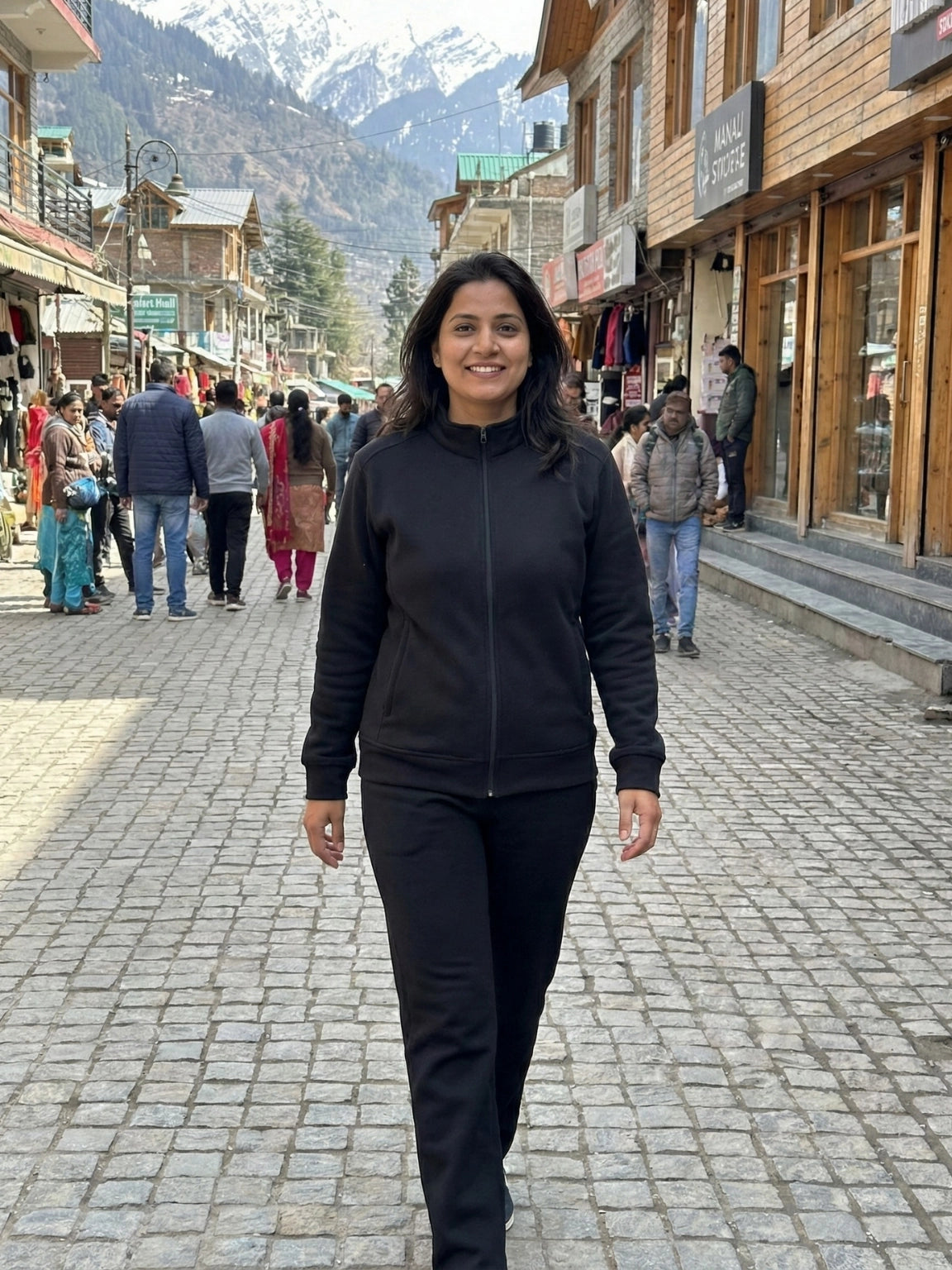 Jet Black High-Neck Zip-Up Winter Co-Ord Set